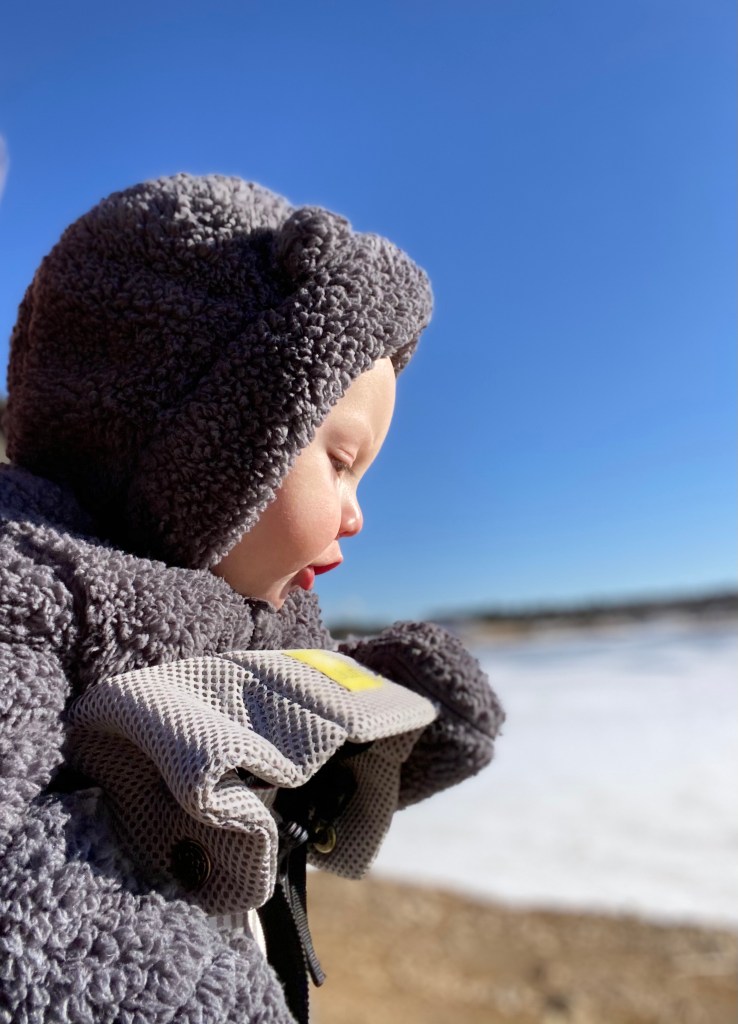 Today we drove up to the mountains and did some hiking before picking up our grocery order. BabyBird is happiest when he’s attached to me, in any way. He loves his carrier and because it’s snowy and cold here, he gets to bury his little face in my neck. He’s a good little rider as long as he’s with his mama. We completed our hike, grabbed the grocery order and headed home.